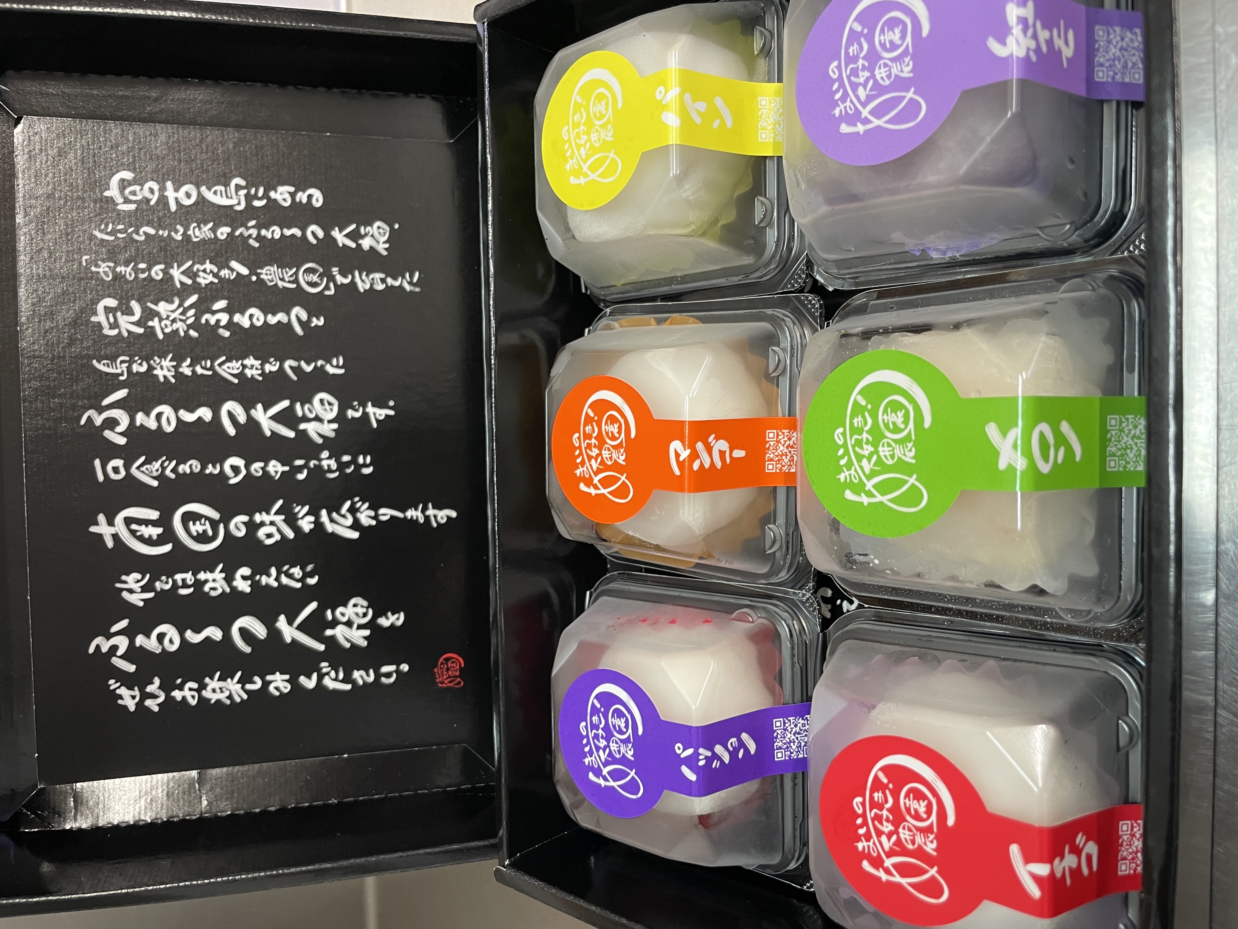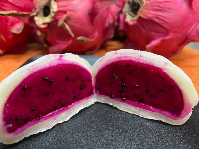 「あまいの大好き!農園」で大切に育てた完熟フルーツと、島で採れた新鮮な食材を使って作った自慢の「ふるーつ大福」です。一口食べると、口いっぱいに南国らしい甘さと香りがふわっと広がります。旬の時期には、大福の中にみずみずしい生のフルーツを使用しており、季節ごとのおいしさもお楽しみいただけます。
