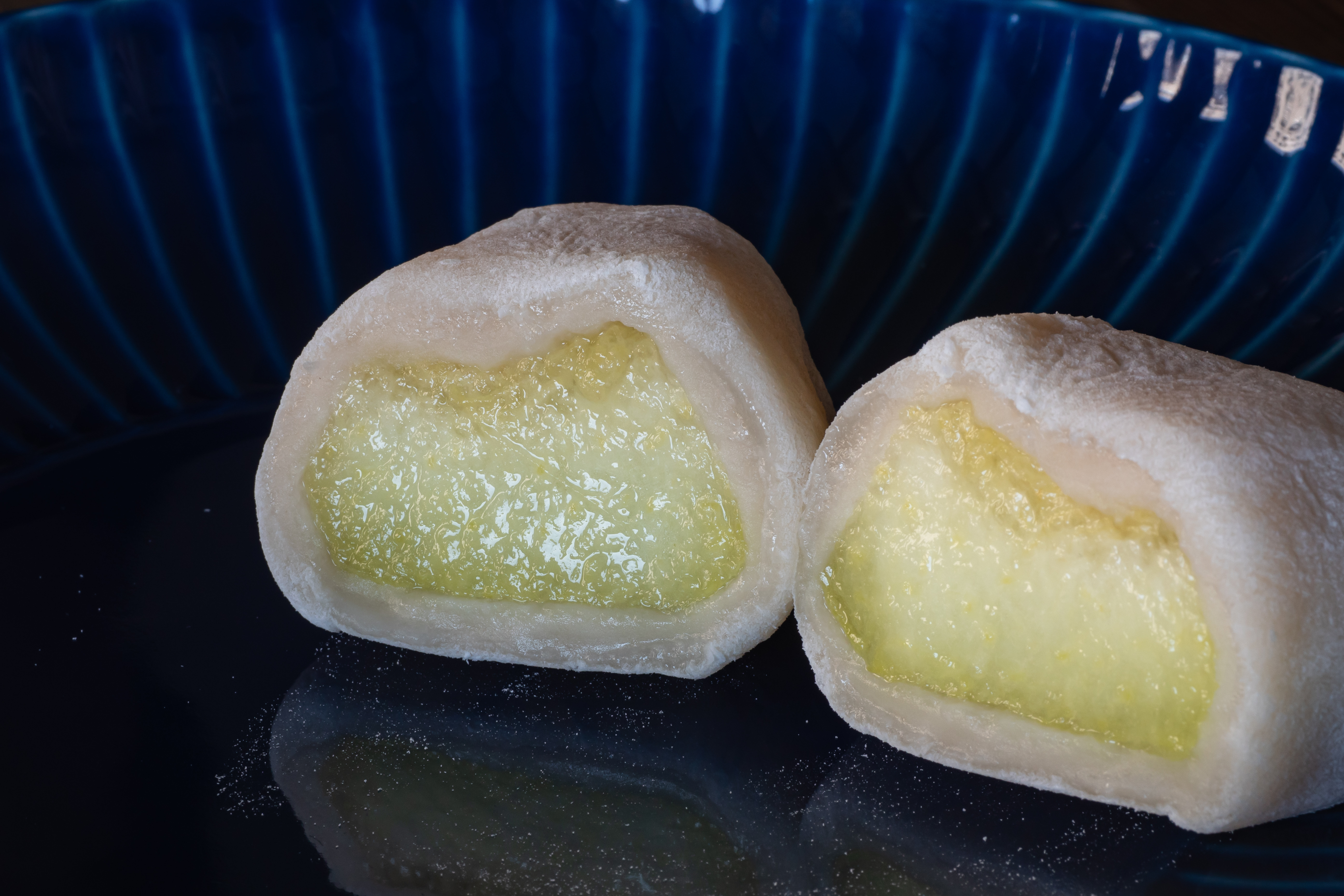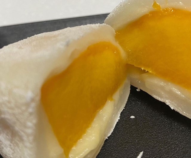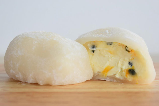 生クリームとチーズクリームを酸味いっぱいパッ ションフルーツで混ぜ白あんと柔らかくもっちりとした求肥で包みました。